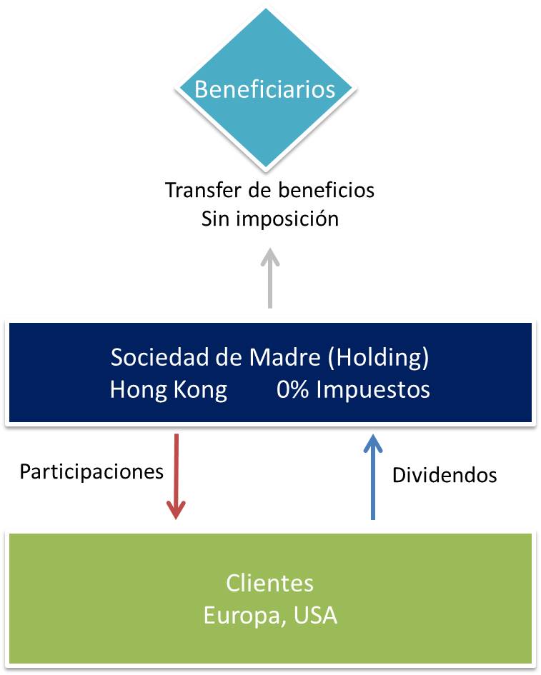 El montaje de holding consiste: en ubicar una sociedad madre y una sociedad filial. Hong Kong es un centro internacional que permite: